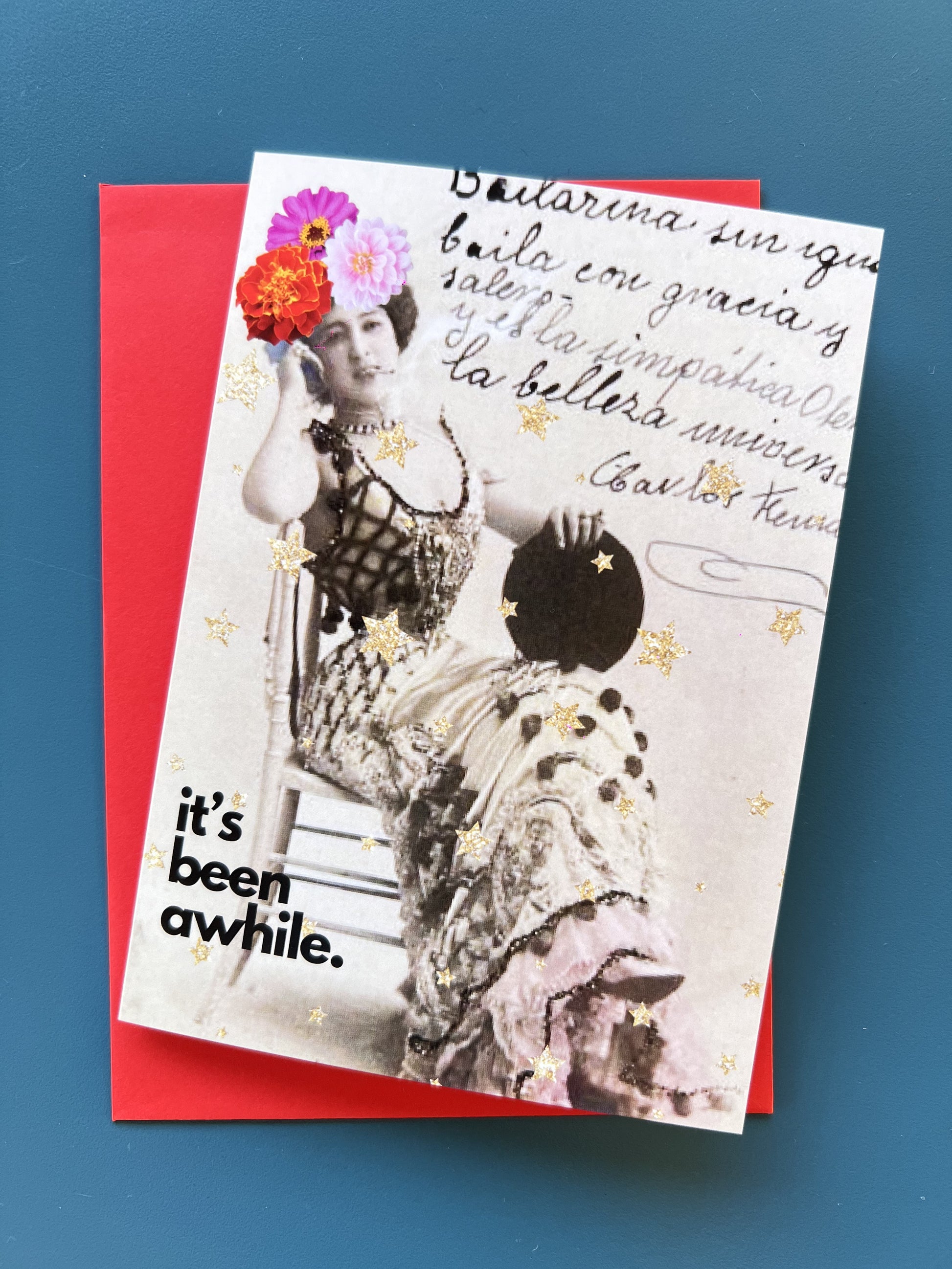 Stay in touch with people you care about by sending them a lovely card! Each card is designed by the artist, Sarah Hannevik. Vintage photos found in flea markets are altered to create this whimsical card.